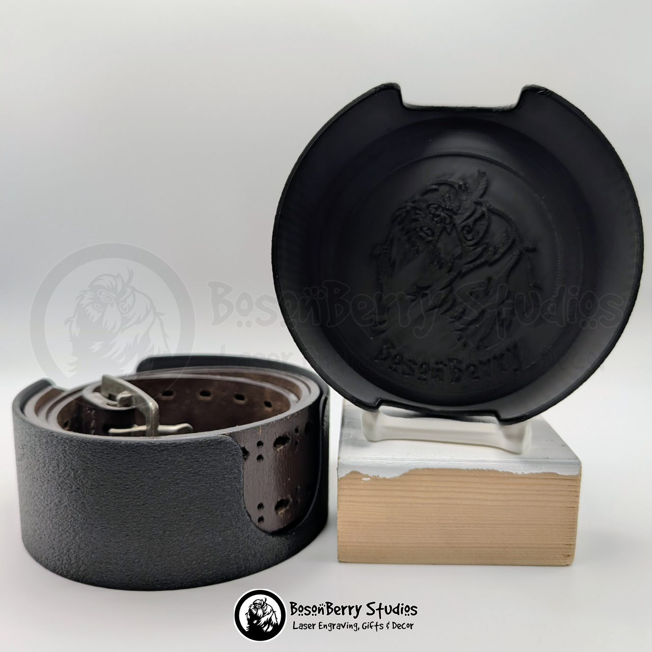 We all need a little more organization in our lives, so here’s something to help. This 3D printed plastic belt holder can keep your belt rolled and safely tucked out of the way on a shelf or in a drawer. Choose from a variety of colors to match your décor (or just your personal taste). This is a 100% BosonBerry Original™️ design. These holders measure 4 ½ inches in diameter and are 1 ⅞ inches high.