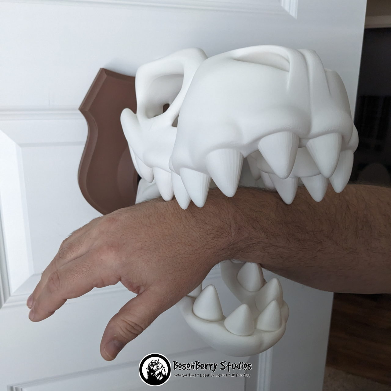 Show the world that you're a mighty hunter with this Mounted T-Rex Skull 3d print. It's over eleven inches long (including the plaque) and brings an air of adventure and excitement to any decor: bedroom, office, even a nursery. Also included is a giant bone for your articulated Rex to nom on. They will be printed first come-first served because of the time & material these chonky dinos consume. You can totally tell your friends you're the one who took the beast down. We can keep a secret.
