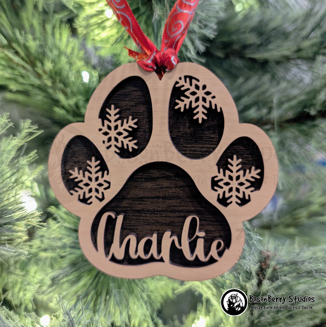 Pet Name Pawprint Christmas Ornament