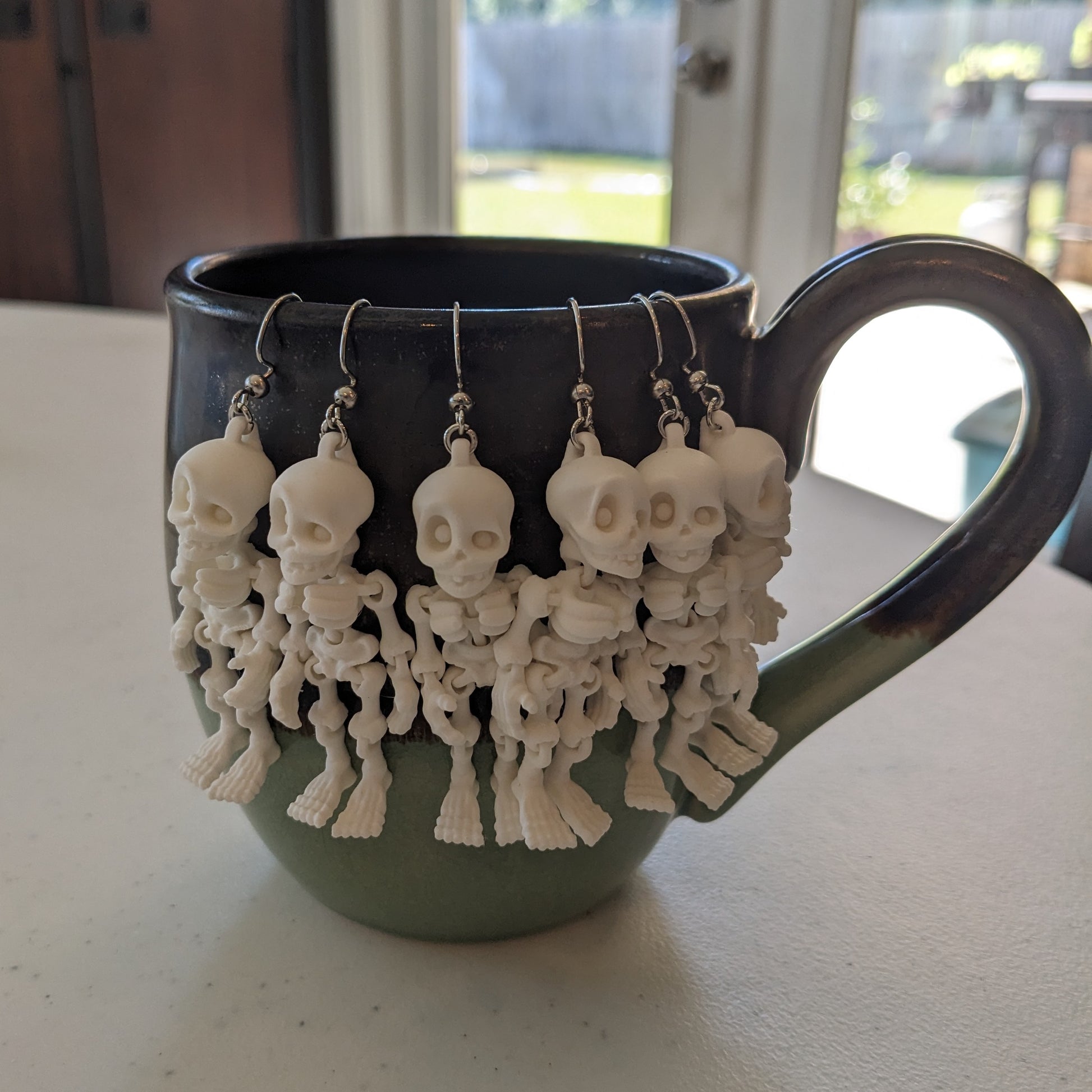 Welcome any occasion...Halloween, an orthopedic appointment, a Bible study on Ezekiel...with a pair of Wiggly Skeleton Earrings. These articulated, 3d printed earrings move about as you do, and you'll definitely find yourself fiddling with them during long class lectures or while you're on hold. They come in cotton white (for those afraid of the dark), and glow-in-the-dark (for those who aren't). Grab yourself a pair today.