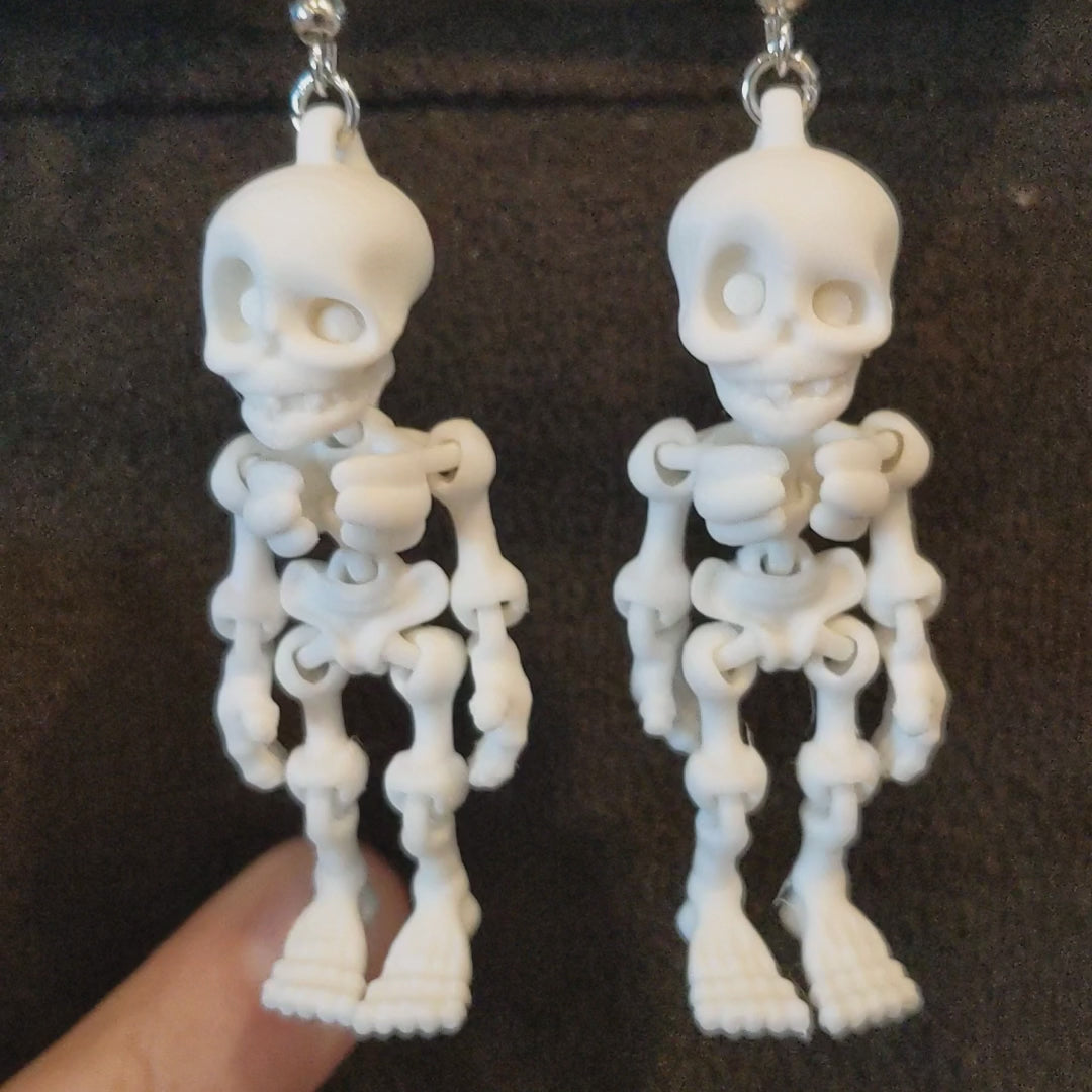 Wiggly Skeleton Articulated 3d Printed Earrings
